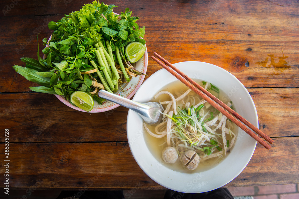 Close Up Of Pho Noodle Soup In Restaurant In Luang Prabang Laos Pho Is Traditional Vietnamese Noodle Soup Now Is Popular Food Widespread Around The World Stock Photo Adobe Stock